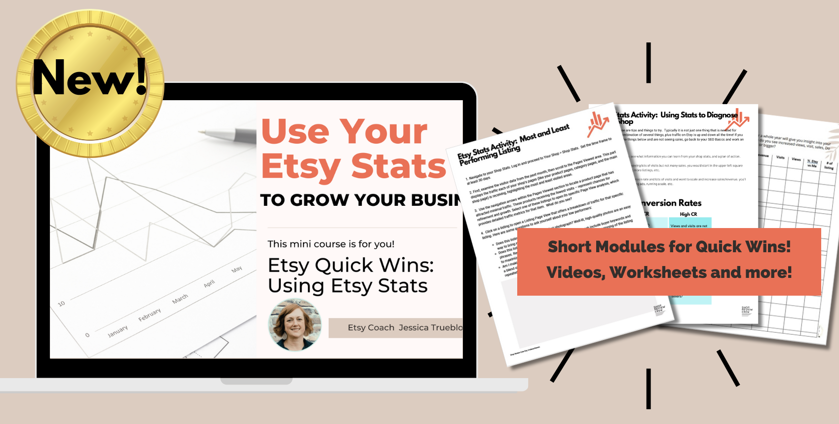 This mini-course includes worksheets, articles and videos, that walk through all the basics of reading, understanding and utilizing your Etsy Stats! You have 12 months of access to this course, so you can take your time!